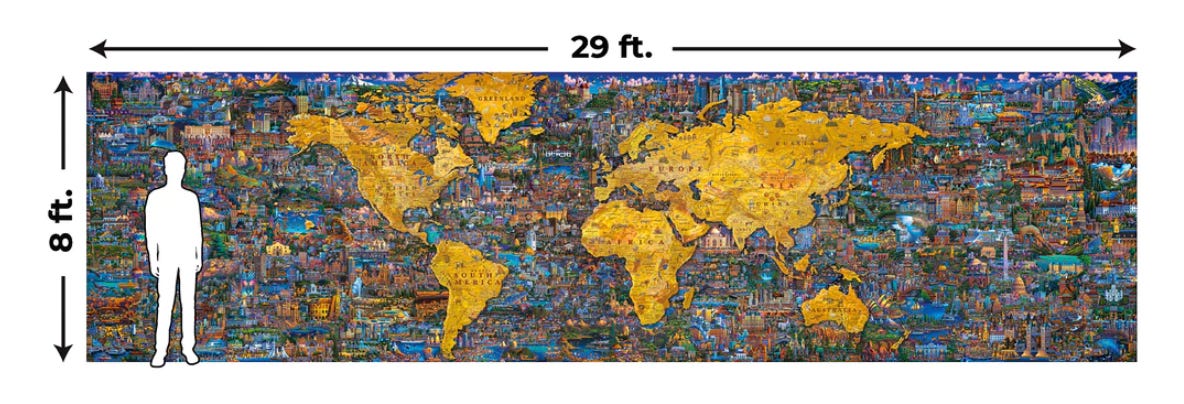 The 232-square-foot world map is considered the world's largest commercially available puzzle