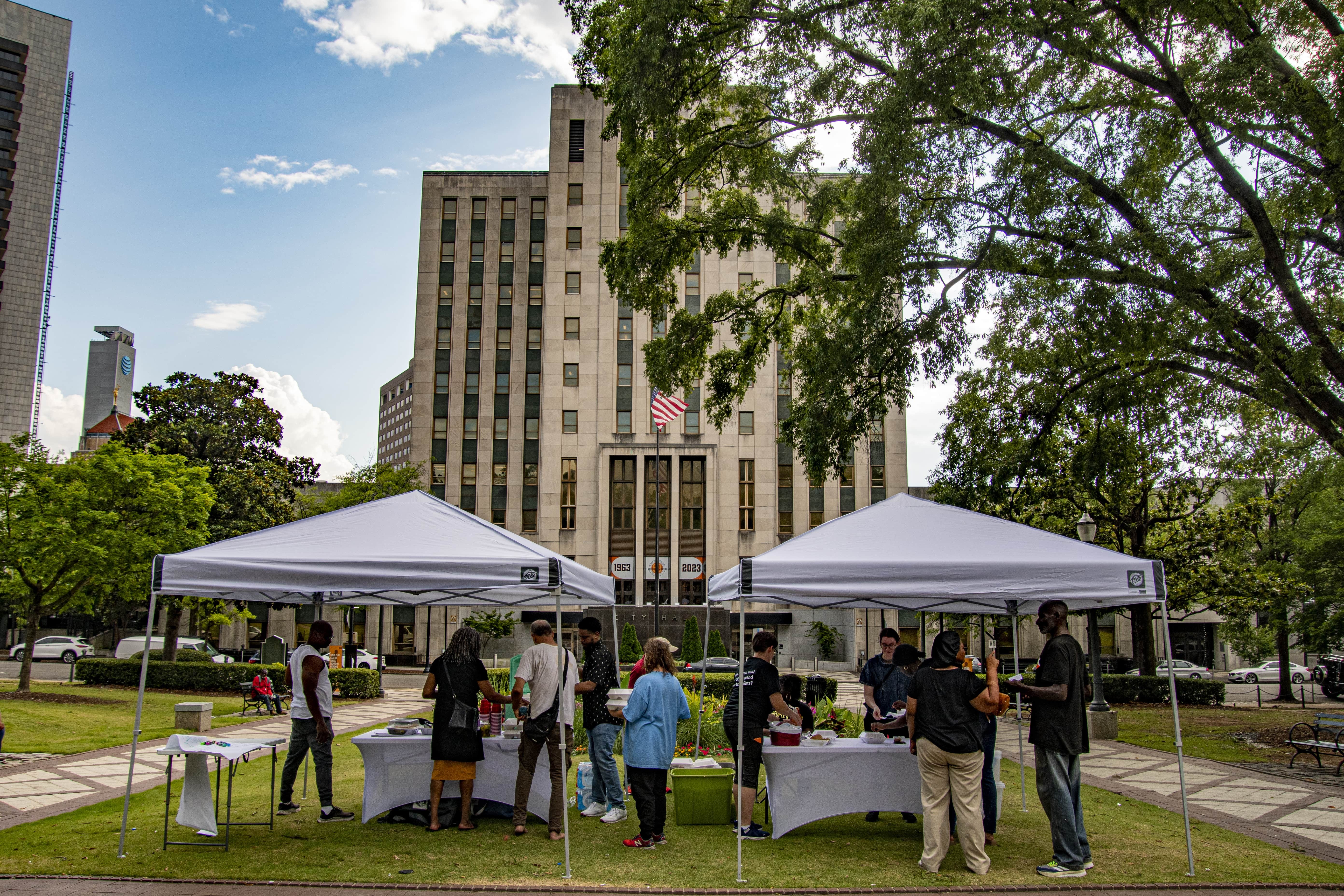 Jimmy DeBruce and Deborah Faddis didn’t know about the public hearing on the mayor’s proposed budget, but the pair were glad organizers from People’s Budget Birmingham had distributed food in Linn Park ahead of the meeting and asked for their thoughts on what the city’s spending should look like.